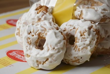 Nuestras rosquillas, elaboradas con la más alta calidad, son un verdadero placer para los sentidos. Cada una de ellas está cuidadosamente hecha con ingredientes seleccionados, logrando una textura perfecta y un sabor irresistible. Cada una de nuestras rosquillas están untadas de forma manual con un delicado baño blanco que las cubre con una capa suave y brillante, resaltando su aspecto apetitoso, su sabor dulce y delicado.¡Una verdadera joya de la repostería artesanal que refleja nuestro compromiso con la calidad! Y aunque este dulce es típico de fechas señaladas como la cuaresma, los paladares mas exquisitos no pueden resistirse a su excelencia gran parte del año.
